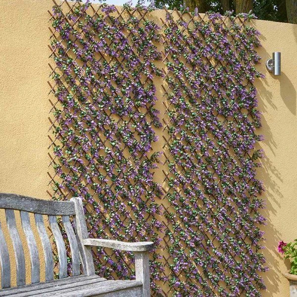 - Realistic UV resistant violet leaf style, attached to an expandable willow trellis
